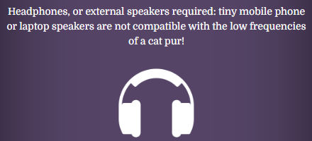 Headphones, or external speakers required: tiny mobile phone or laptop speakers are not compatible with the low frequencies of a cat pur!