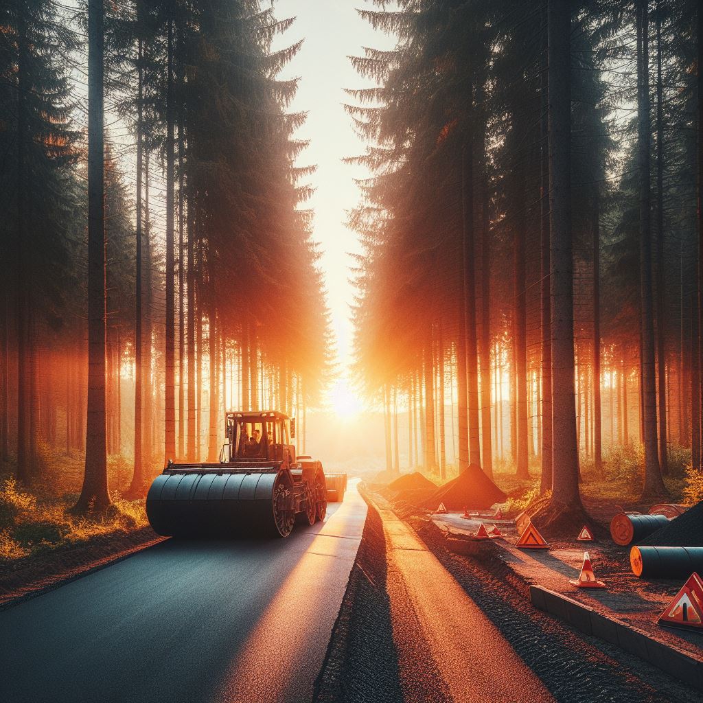 Ёлки есть, асфальт есть, закат есть и даже асфальтоукладчик есть. Ну почти. 😄