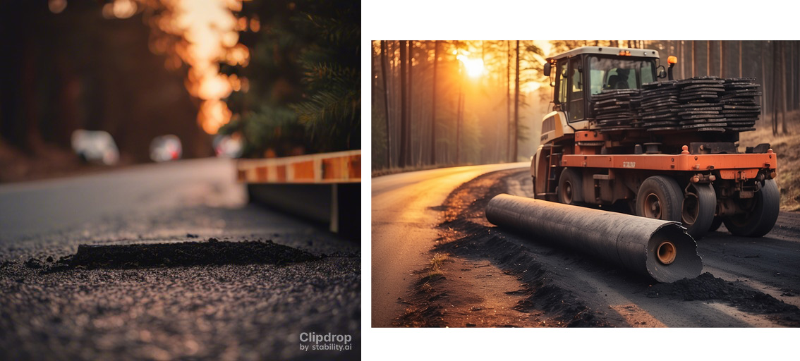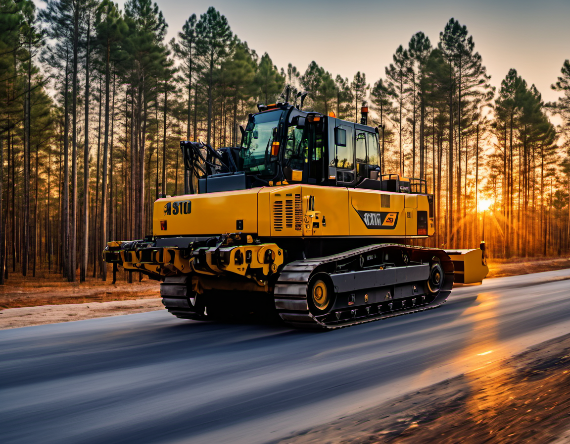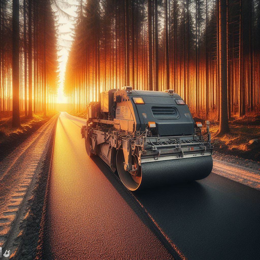 Тот же Bing (вроде на базе Dall-E) гораздо лучше справился. Запрос "asphalt paver on the road in russian forest during sunset".