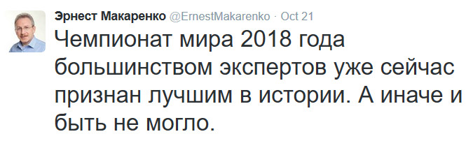Gopnik: Чемпионат мира 2018 года уже сейчас большинством экспертов ясновидящих признан лучшим в истории.