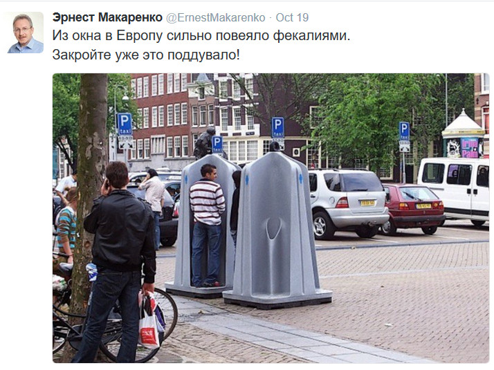 Во, мне понравилось, потому что правда. "из окнав Европу сильно повеяло фекалиями.Закройте это поддувало" Я так понял что это туда веет и прекрасный человек пожалел для гейропейцев свежего ветра)