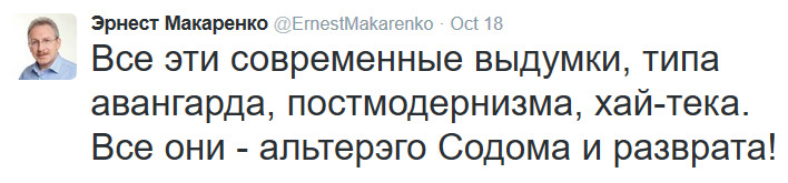 Ну тогда тем более интересно его читать! Одно дело - кто-то прикалывается. А другое - этот прекрасный мужчина такое пишет совершенно серьезно! Я теперь каждое утро начинаю с чтения его твиттера. Потому что рядом с ним даже Сергей Марков кажется Барухом де Спинозой.
