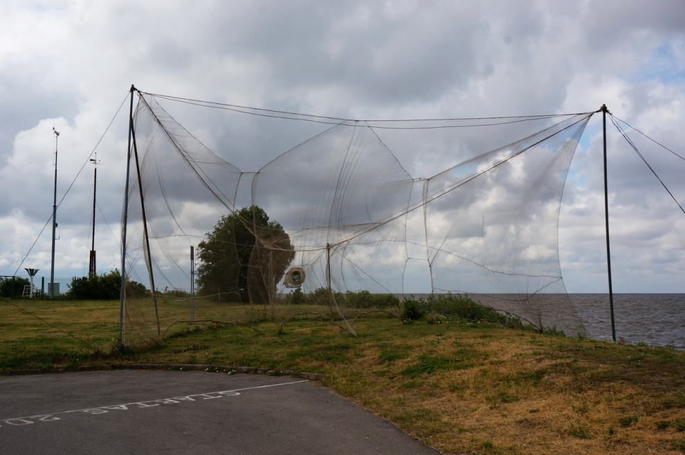 Здесь находится гидрометеостанция наблюдения. Также они наблюдают за птичками, которых ловят вот в такие растянутые сети (я сначала думал, что это для мячей от гольфа - чтобы не улетали в залив), потом птичек кольцуют и отпускают.