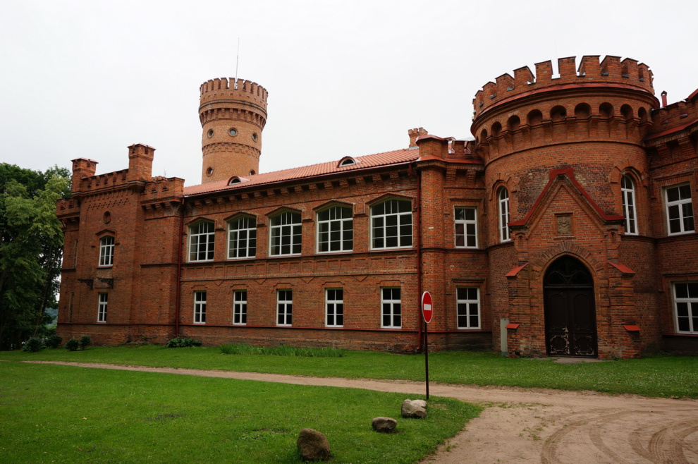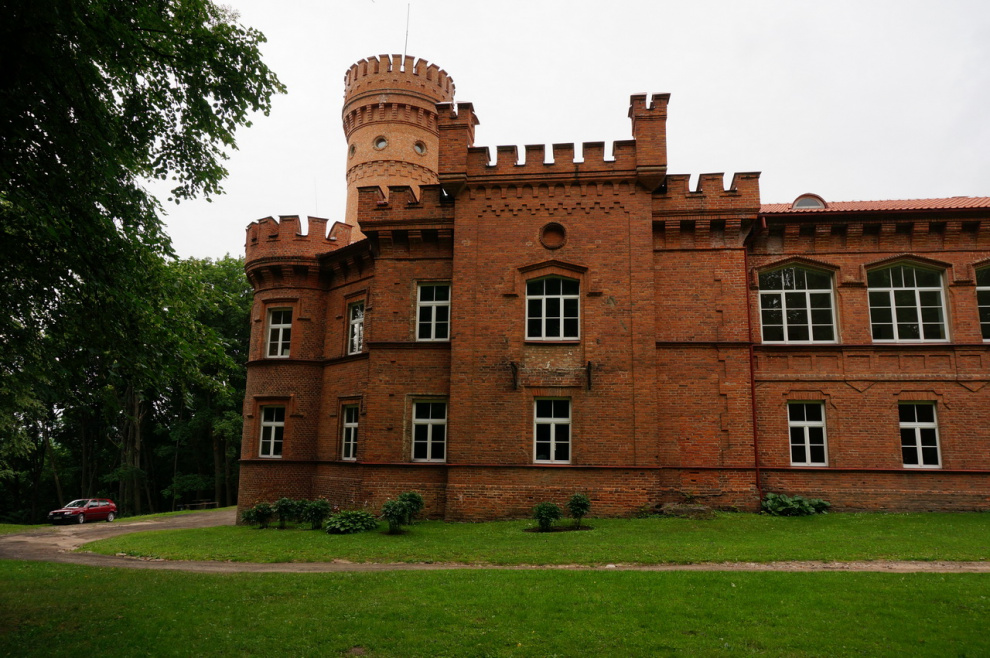 Первый раз замок построили в конце XVI века. Его владельцем был король Сигизмунд II Август. Потом его разрушили (замок, в смысле, разрушили, а не короля, которого, впрочем, тоже разрушили), отстроили, снова разрушили, снова отстроили - и так и развлекались до XIX века. Причем последний раз его отстроили в XIX веке, когда замок принадлежал русскому князу Платону Зубову. Он был большой просветитель и повелел, чтобы здание стало примером нео-готической архитектуры. Собственно, именно так замок выглядит и сейчас, а в нем располагается обычная школа.