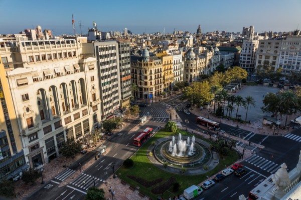 В нашем отеле Melia Plaza Valencia (кстати, очень приличный вариант: отель нестарый, комфортный, отлично расположен и при этом недорогой) можно подняться на 11 этаж и там с террасы открывается отличный вид на главную площадь Валенсии - Plaza Ayuntamiento.