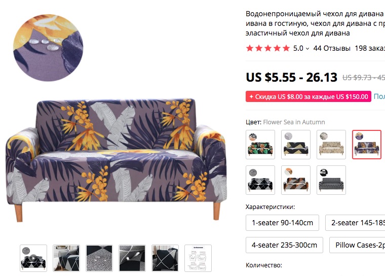 Жена все лето собиралась шить чехлы на диваны, диванные подушки и стулья, чтобы были в одном стиле. Обычные покрывала не устраивают тем, что их постоянно нужно поправлять. Долго приценивалась к тканям на рынках и в магазинах, но до дела так и не дошло. В итоге сейчас заказали на АлиЭкспресс комплект готовых, непромокаемых чехлов, с рисунком в тон будущих обоев. Получается даже дешевле, чем просто хорошую ткань купить. Отзывы хорошие, надеемся на лучшее 😄