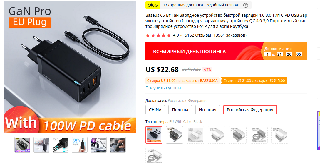 Стартовала главная распродажа года на Aliexpress, которая продлится всего два дня - до 10 утра по Москве 13 ноября.