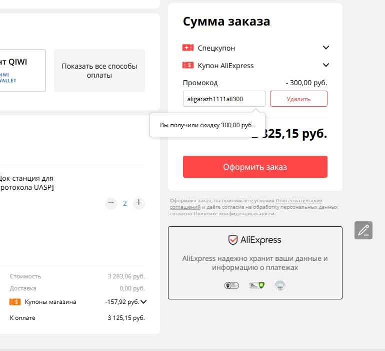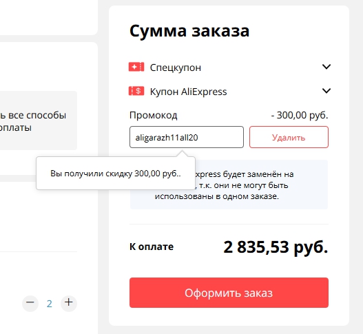? aligarazh11all20 - скидка 300 RUB при заказе от 2400 RUB для всех покупателей