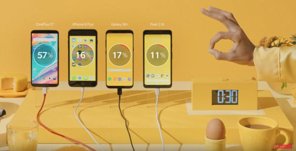 Компания OnePlus выпустила рекламный ролик, в котором рассказывает о превосходстве своей технологии быстрой зарядки Dash Charge над всеми остальными - путем "сравнения" с флагманами других производителей.