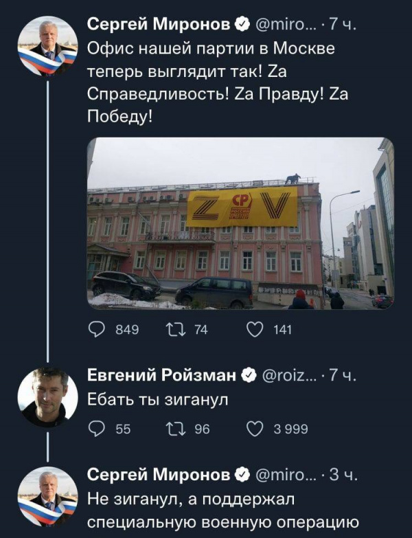 Ну вопрос был: "Как они жить с этим будут?". Вот так они (в т.ч. тот же Миронов) жить будут. С такими мыслями и игнором раздражителей. Искренне считая себя хорошими.