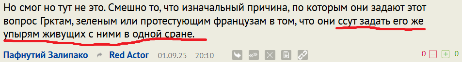 Но смог но тут не это. Смешно то, что изначальный причина, по которым они задают этот вопрос Грктам, зеленым или протестующим французам в том, что они ссут задать его же упырям живущих с ними в одной сране.