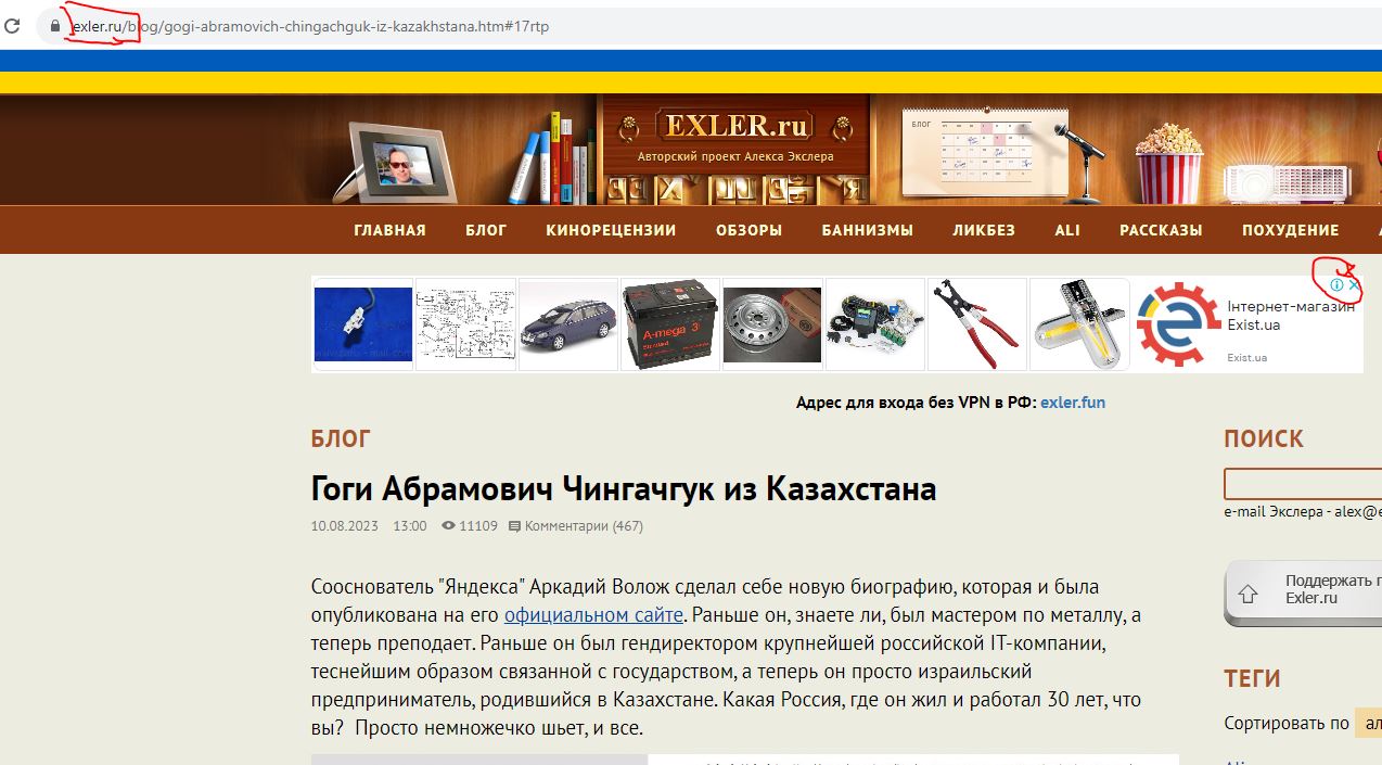 Я читаю обычный экслер.ру и вижу рекламу от гугла.