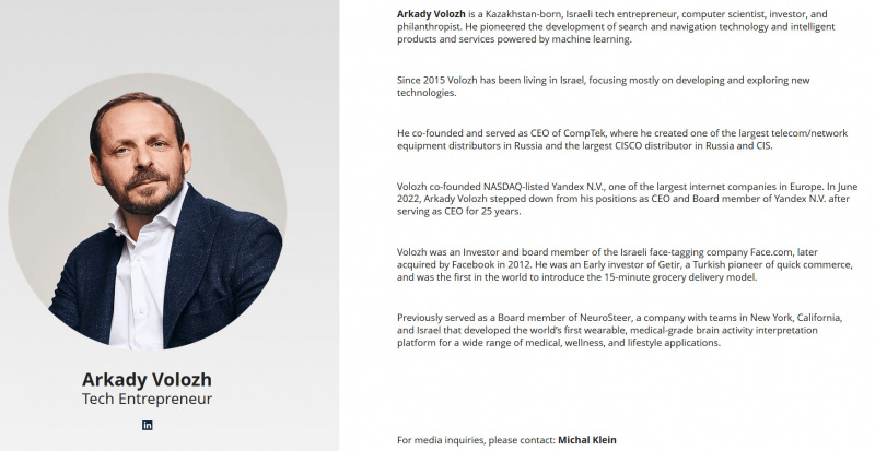 * Volozh is an Israeli citizen who lives in Israel since 2019 and should be regarded as an Israeli of Russian decent.