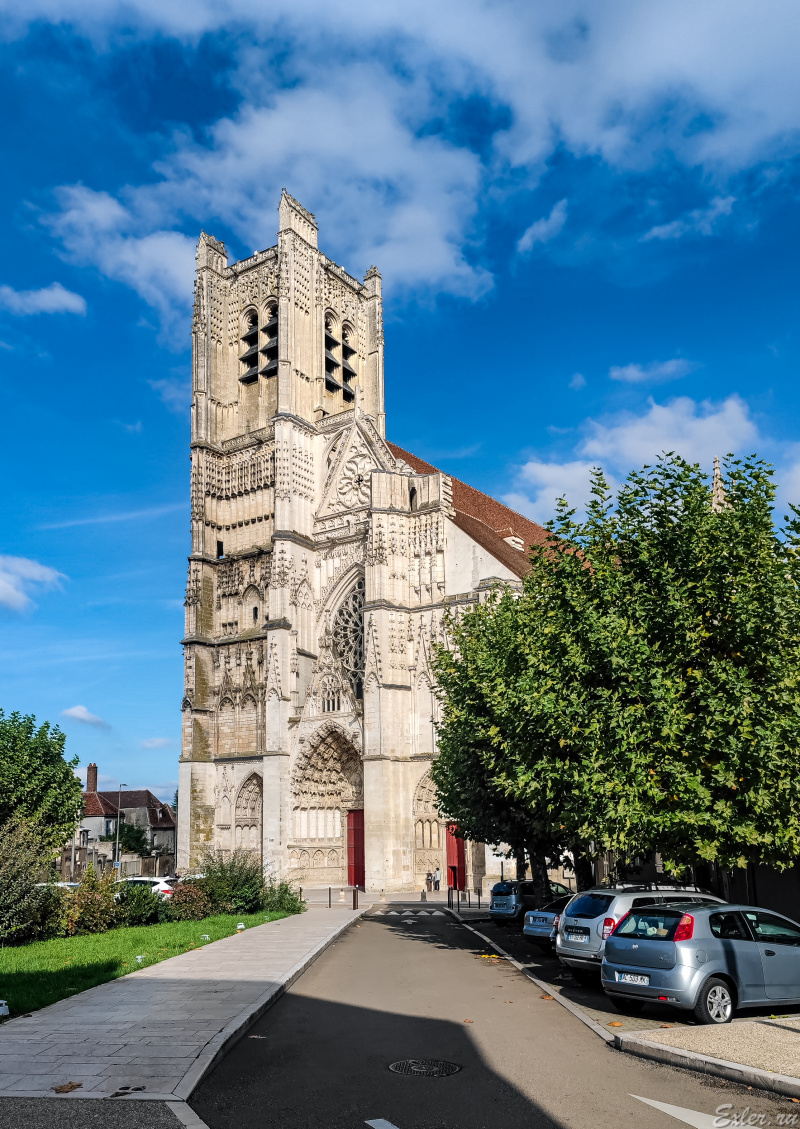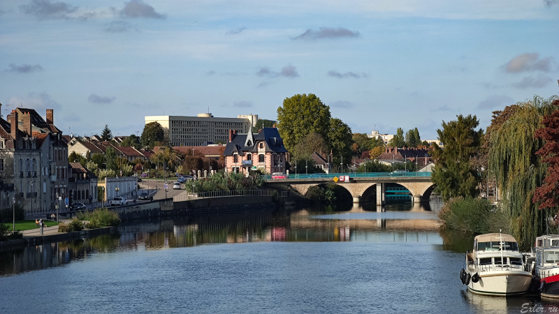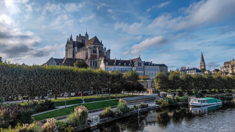 Кафедральный собор Сент-Этьен, который построили в 1057 - это вид на него с моста Портал Свободы через Йонну.