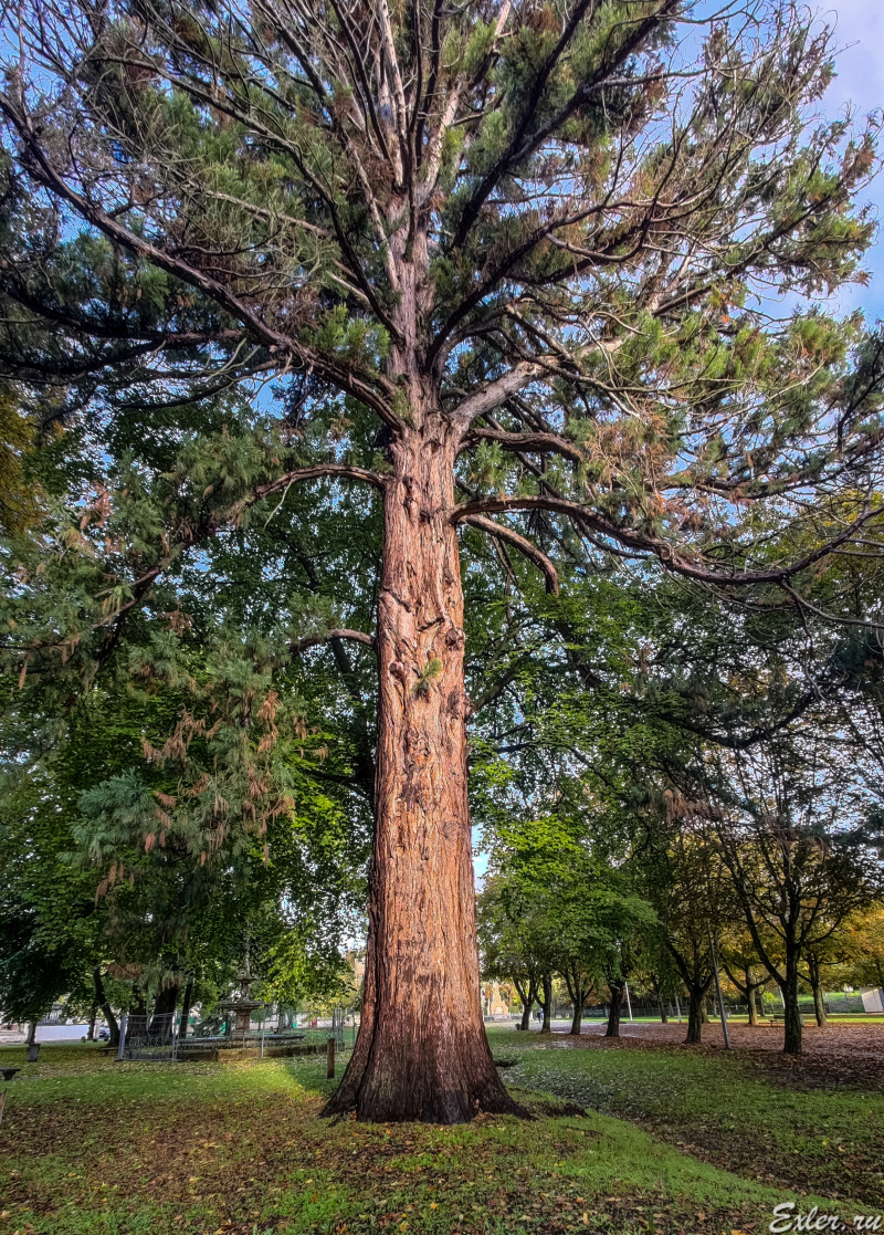 Рядом с отелем - очень симпатичный парк с завезенными сюда секвойями. Вот этому дереву - порядка 300 лет.