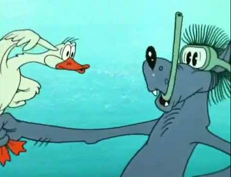 Вот тут лучше видно...это утка в маске и трубкой для ныряния...:)