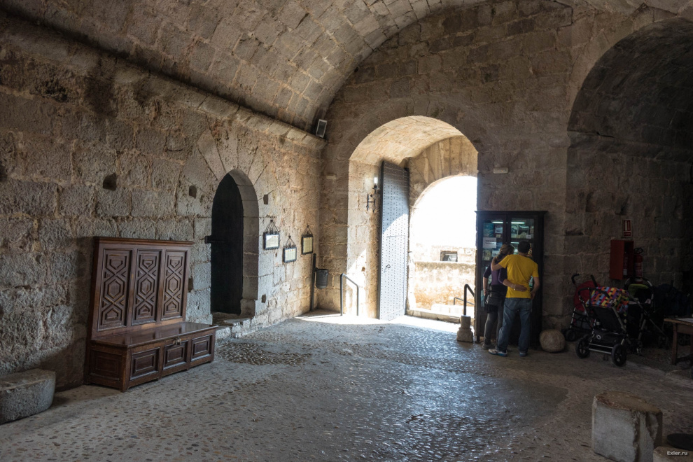 Войти в замок можно либо через ворота Фоск, к которым поднимается крутая дорога от Пласа-дель-Каудильо, либо же через ворота Сан-Педро из гавани. На фото видны ворота Сан-Педро. Кстати, туристов было полно, несмотря на несезон - это один из самых посещаемых замков в Испании.