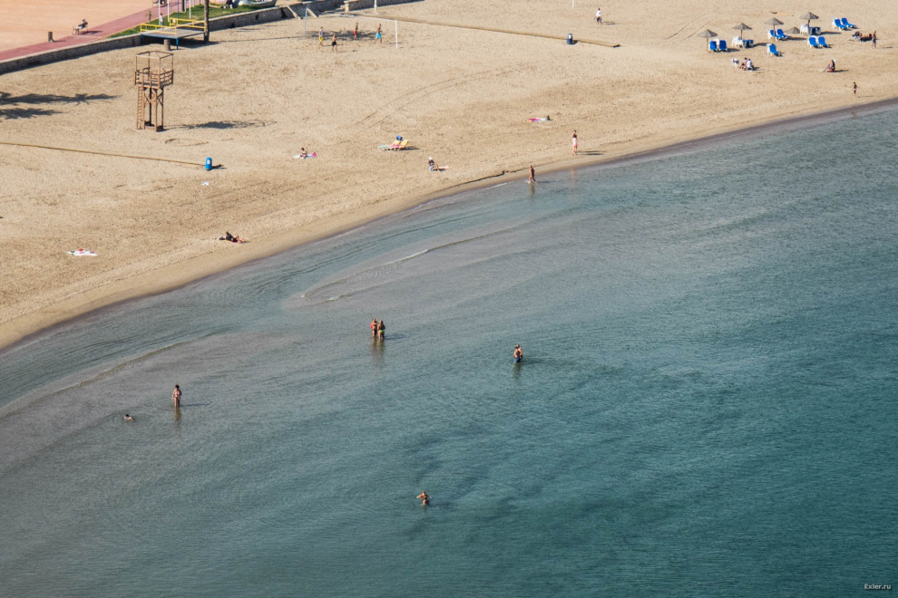 Вода еще теплая (градусов 19-20), народ купается. И это, замечу, второе ноября. Дно здесь пологое, чтобы окунуться - нужно пройти метров двадцать.