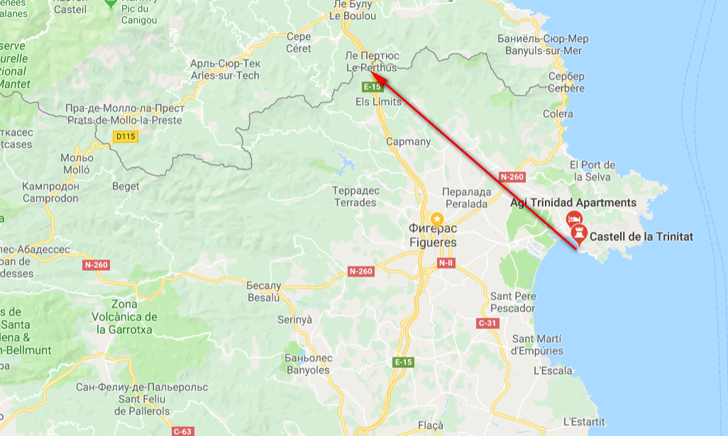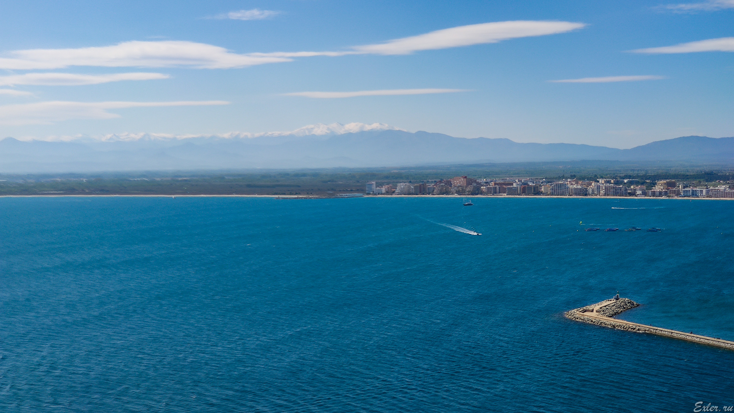 Франция буквально в двух шагах (в городке, кстати, французскую речь слышишь чаще, чем испанскую-каталанскую), видны заснеженные Пиренеи.