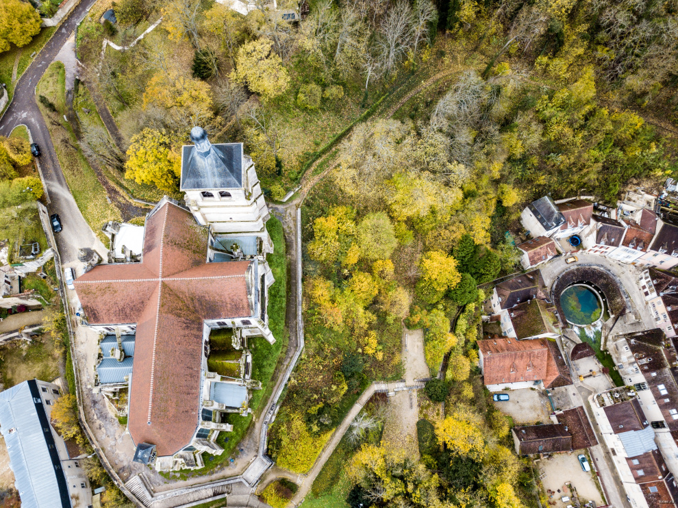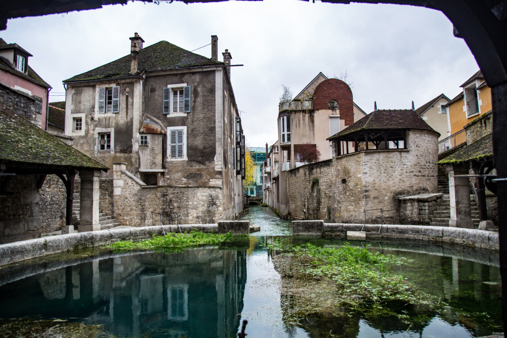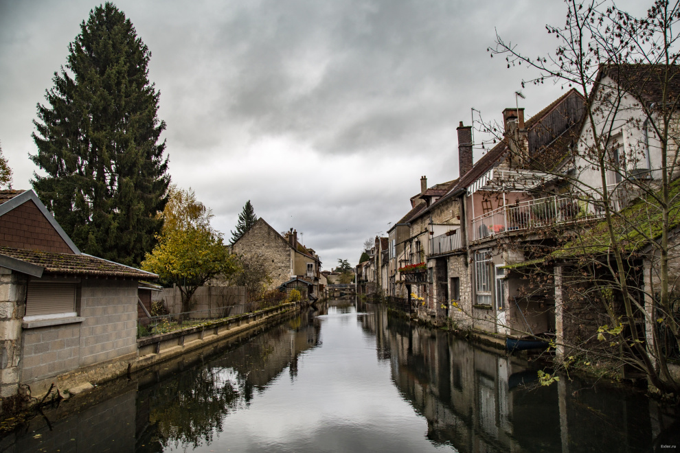 Вот интересный ракурс - церковь Святого Петра слева, а справа виден Ла Фосс Дион (La Fosse Dione) - карстовый источник, расположенный прямо в центре Тоннера. Мы к нему потом спустимся.
