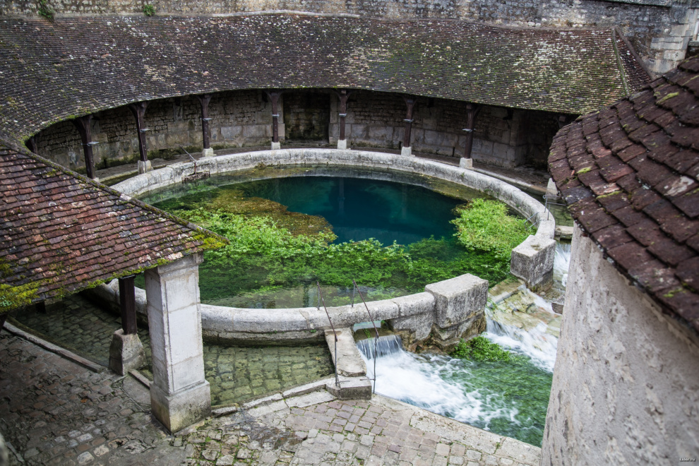 Вот карстовый источник поблизости. Вокруг него, по французской традиции, выстроена полоскальня для белья, сделанная из камня. И этой полоскальне - черт знает сколько лет, ее построил в 1758 Луи д'Эон, отец знаменитого Шевалье д'Эона.