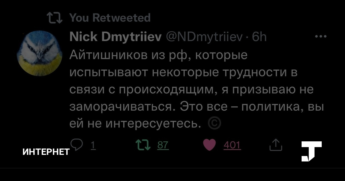 Друзья, сейчас очень внимательно про законопроект о запрете на выезд IT-специалистов. Я выскажу свое соображение, основанное на знании того, как появляются и удаляются новости в государстве российском. Имела опыт, так сказать.
