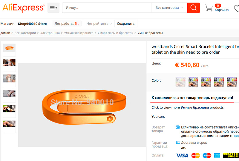 А мы же помним, что такое этот Cicret. Группа жуликов разместила на краудфаундинговой платформе сбор средств на этот "браслет". Его работа демонстрировалась с помощью явно смонтированных видеороликов. Жулики бабки собрали и свалили. (Такое, к сожалению, случается не так уж и редко.) Причем сайт у них до сих пор работает.