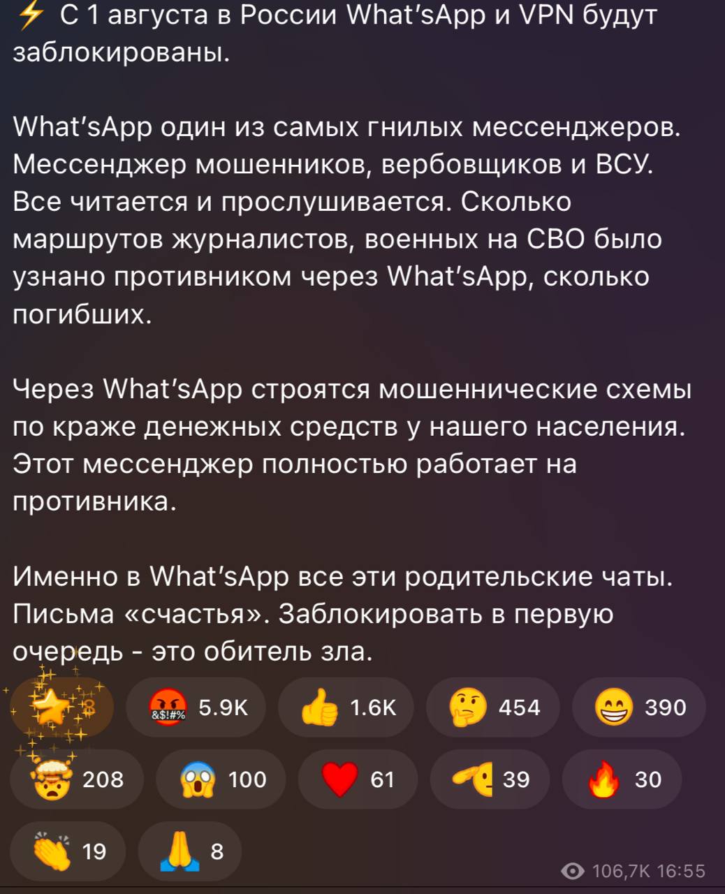9. Готовится отключение WhatsApp (а возможно и Телеграм) с переходом на отечественный Мах