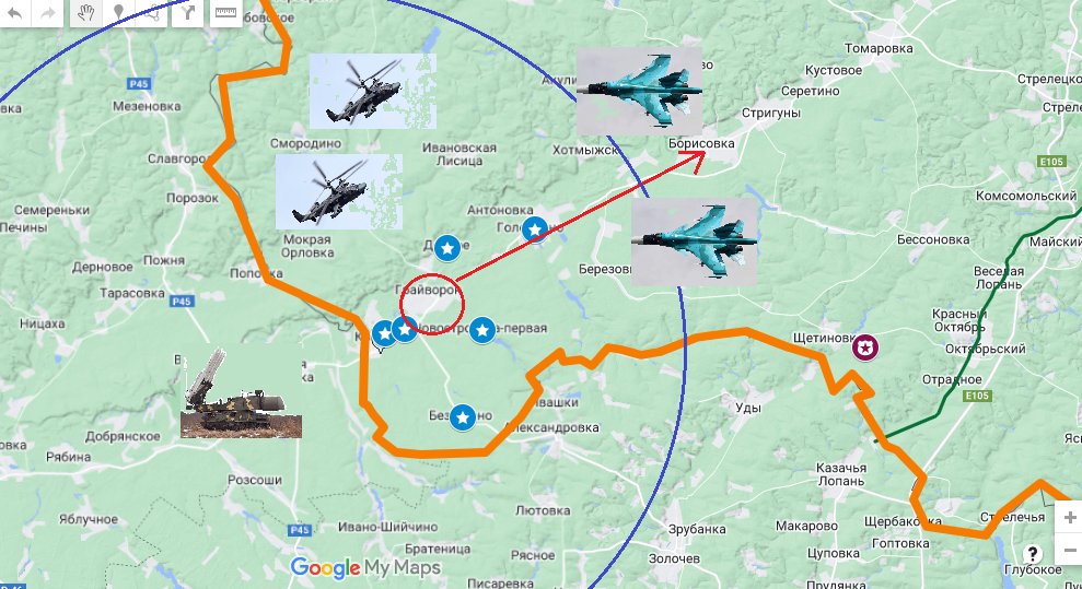 На 0_:_38 - справа поворот из Грайворона на Новостроевку, а слева - что-то прилетело (как раз в направлении на кружок).