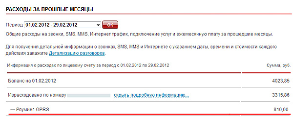Рылся тут во всяких своих настройках и телефонных счетах МТС, обнаружил веселенькую строчку, когда запросил раскладку расходов за февраль.