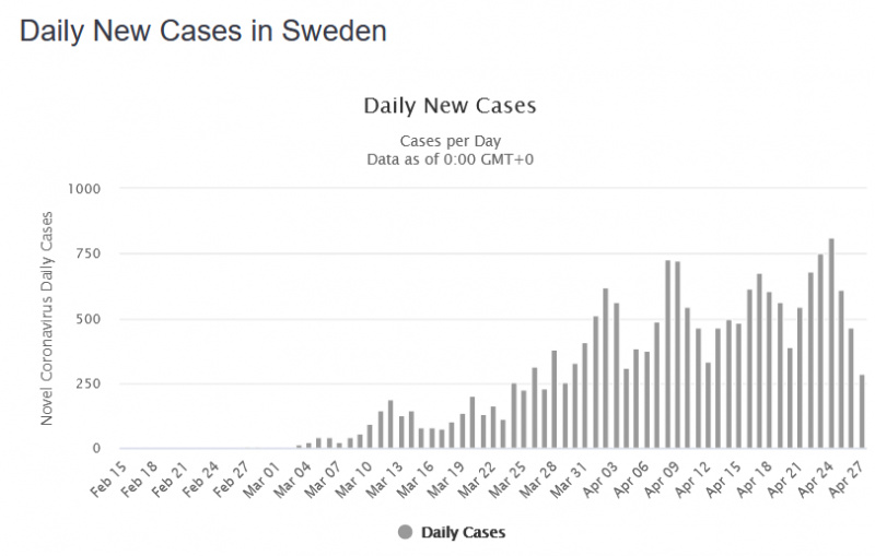 Почему такие странные провалы в графике в районе выходных и начале недели? Вроде Швеция-то статистику довольно четко собирает.