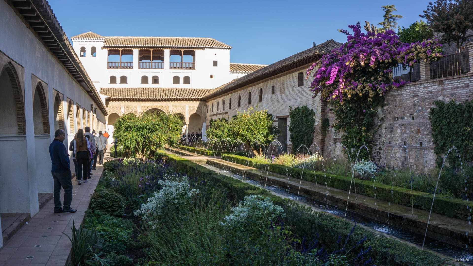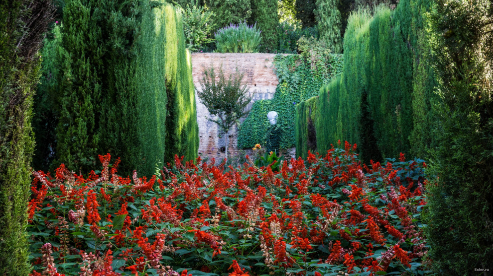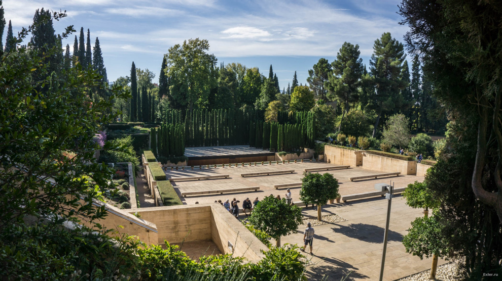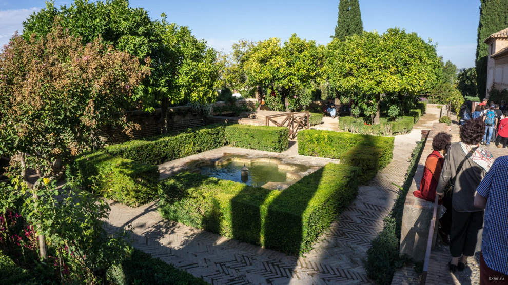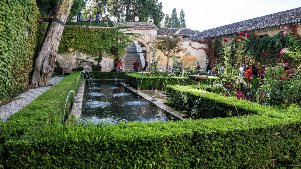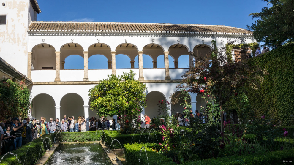Зачем все это сделано? Только для красоты? Нет, это же юг Испании. Летом тут очень жарко. А такое количество воды создает свежесть и прохладу - и поверьте, это очень и очень ощущается.
