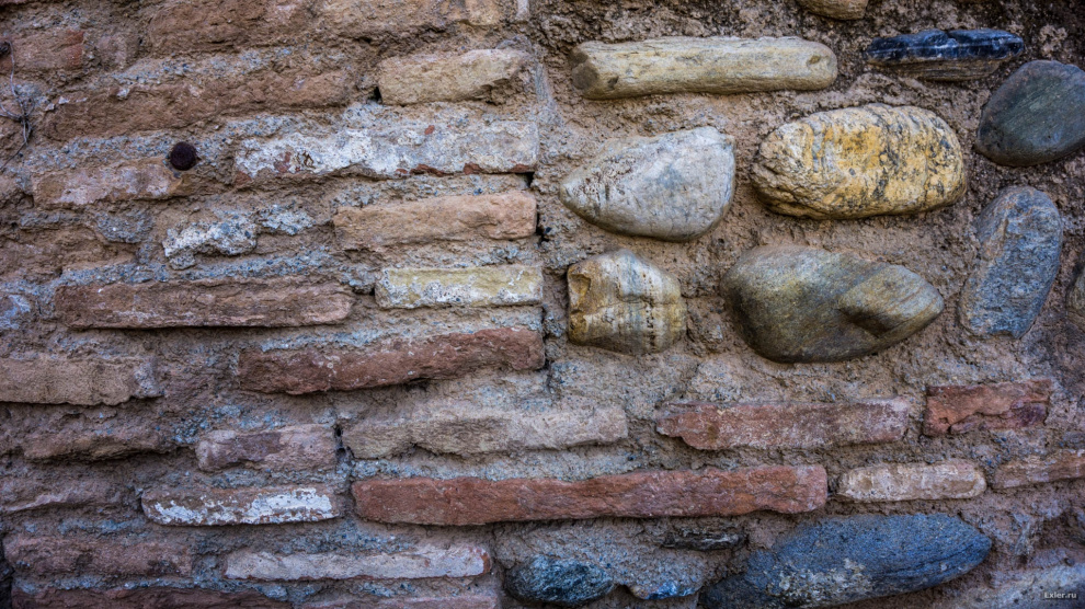 Кладка разных времен. От пластин до округлых камней. Кстати, пластины действительно имеют красноватый цвет.