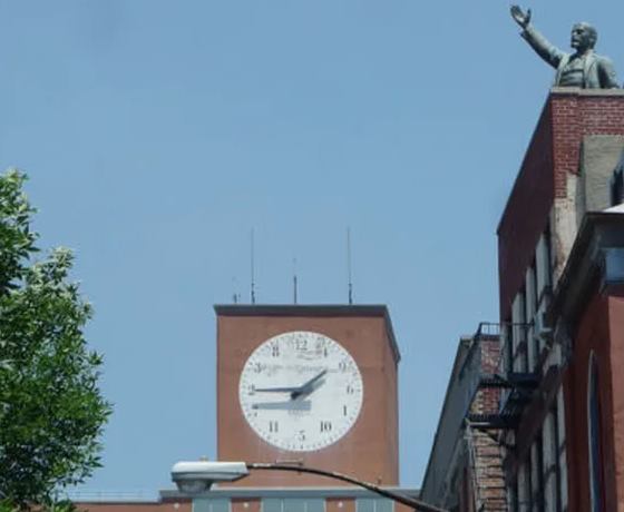 When the Dermot Company bought the building for $100M, they ditched the statue (it was relocated to 178 Norfolk Street) but the iconic clock remains.