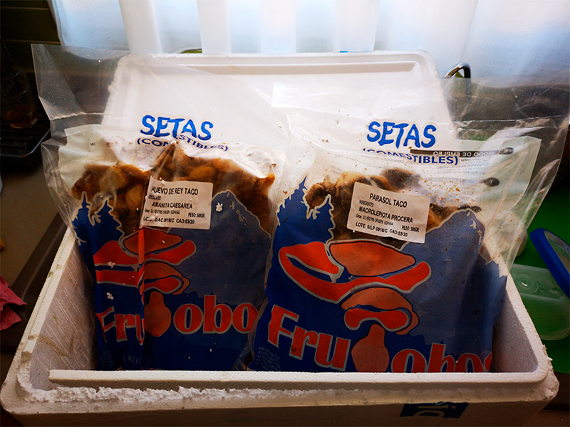 Обнаружил в Испании сайт, специализирующийся на поставках грибов: как свежезамороженных, так и сушеных. Пошел искать деликатесы - зонтик (он в Испании так и называется - Parasol) и цезарский гриб (Amanita caesarea он же Huevo de rey - королевское яйцо). Нашел. Стоят совсем недорого - что-то там порядка 8-9 евро за кило.
