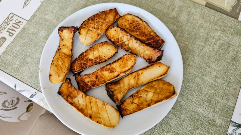 После первой прожарки в ресторанах снимают с плиты, мажут пастой мисо, перчат и потом уже кидают обратно на сковороду с маслом. Там вариантов безграничное количество, но тут сам факт двойной прожарки важен: сначала сухая, а потом в масле. Тут они называют ся king oyster mushrooms.