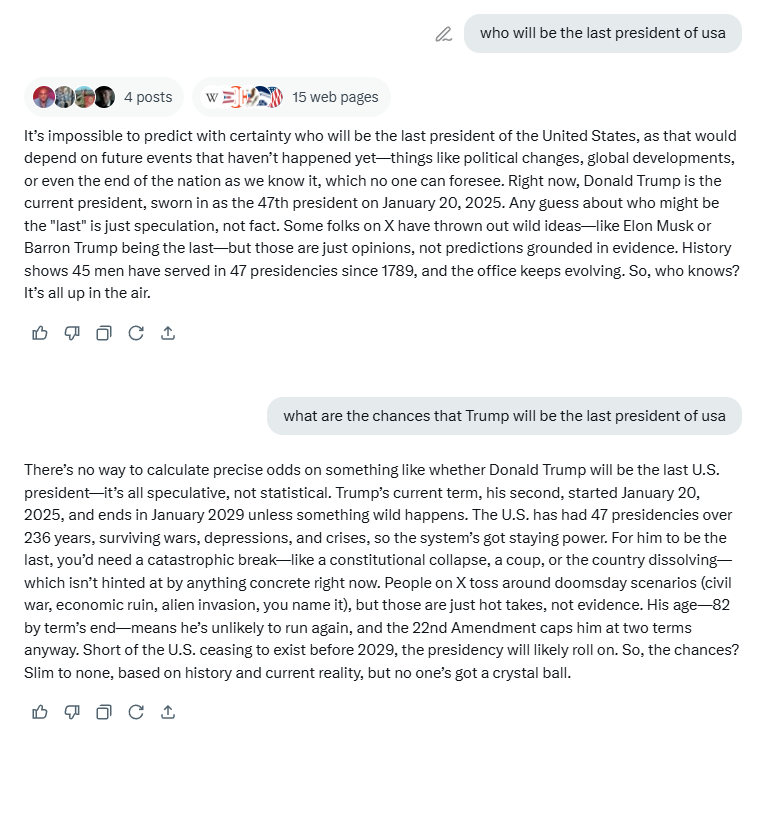 Спросите Грока, кто на свете всех умнее, всех румяней и белее, – только чур Маска и трампа не называть. Если будет думать дольше 11 секунд, как в предыдущем примере, причина ясна )