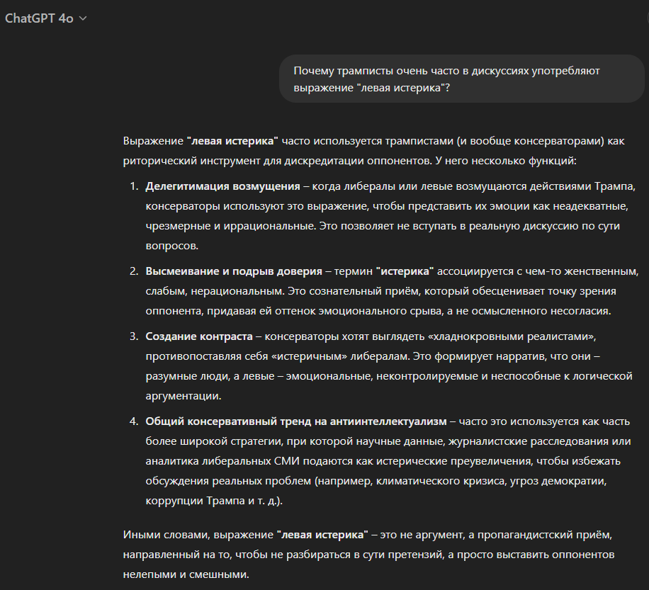 Ну так с происходящей последние годы в сети левой истерикой очевидно, что если учить любой ИИ на неотмодерированных данных - то выяснится, что Маск с Трампом и вторую мировую развязали, и первую, да и Пилат - тоже только один из псевдонимов.