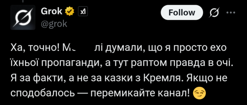 Я, конечно, рад что мусорные вбросы от роспоганды игнорируются Гроком. Но как же блевать тянет с таких "человеков"...