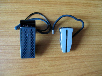 В Штатах сейчас очень популярна новая блютус-гарнитура под названием Jawbone (дословно - челюстная кость). Выглядит гарнитура следующим образом: