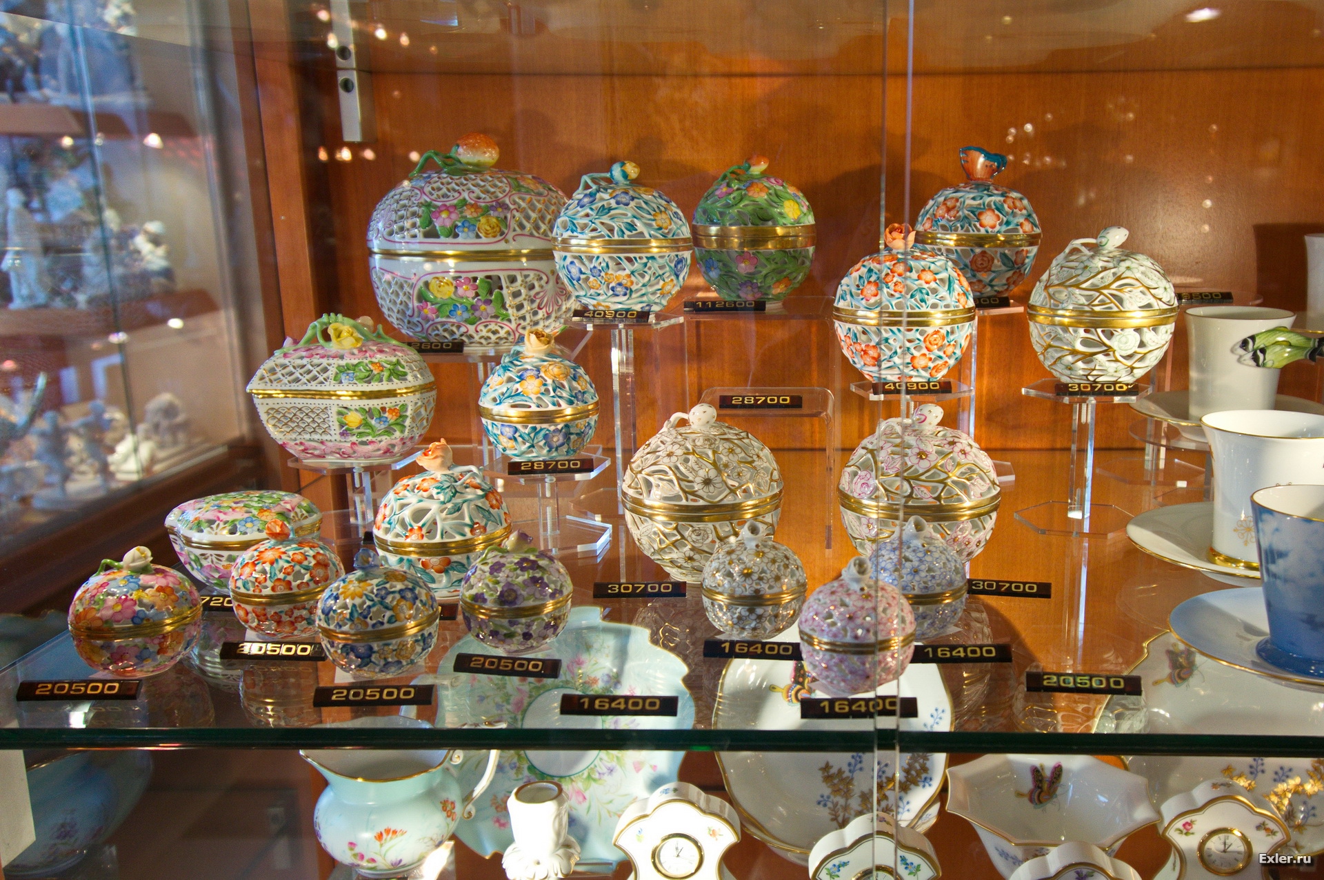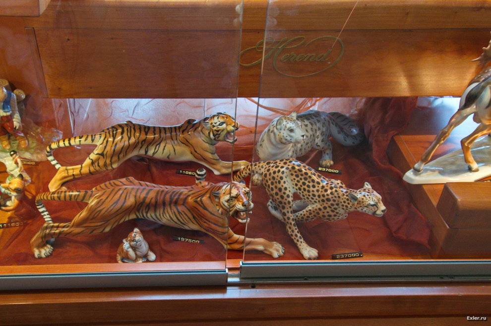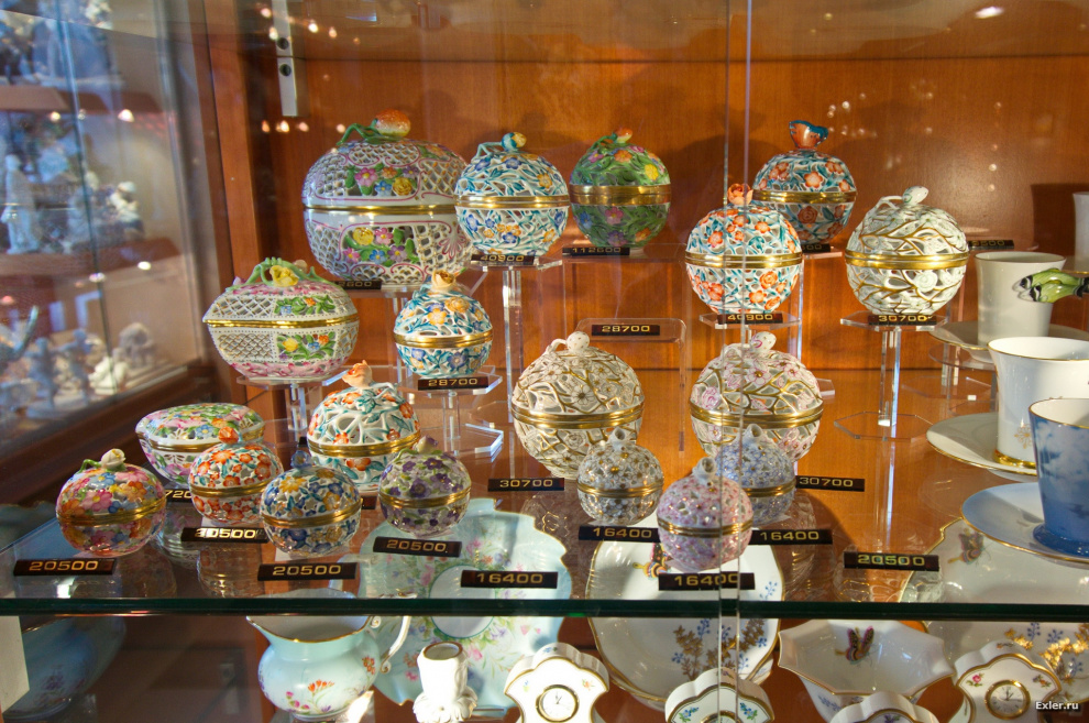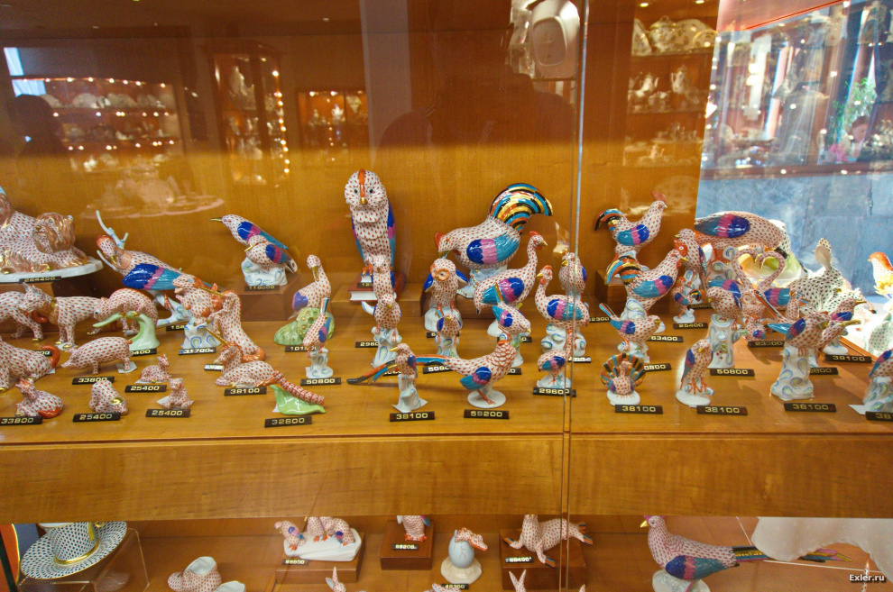 Вот, для понимания, то, что выставлено на витринах магазина. Это все - ручная работа, поэтому цены, конечно, впечатляют. Чтобы понять, сколько там что стоит, делите цену на 230 - получите сумму в долларах ($1=230HUF)