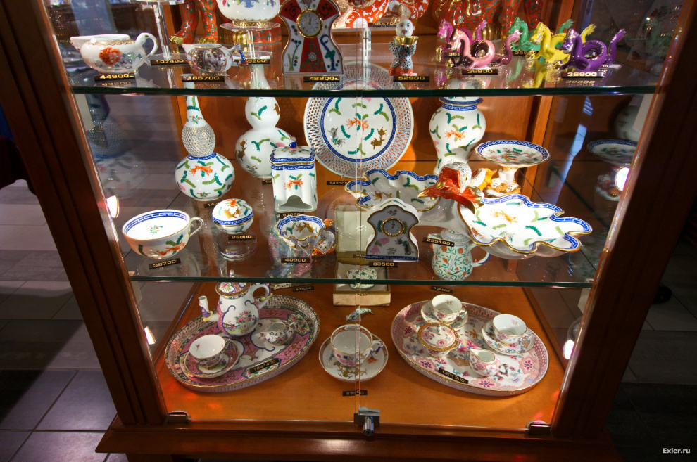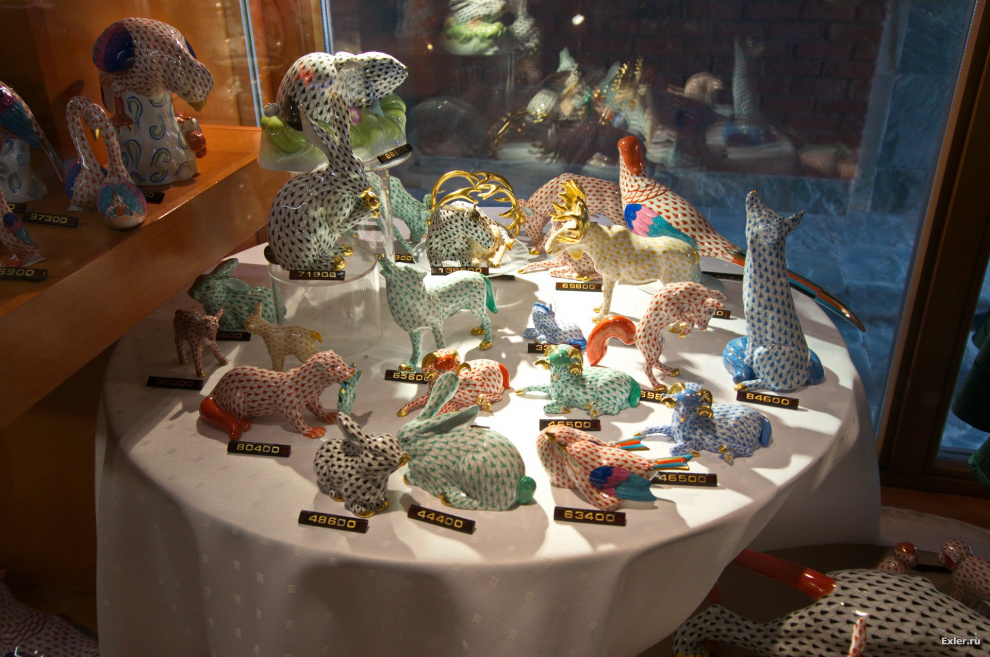 Во время тест-драйва Infiniti JX35 у нас было посещение знаменитой фабрики по производству фарфора в городе Херенде. Я поначалу на эту фабрику и идти-то не хотел в силу невысокого интереса к фарфору, однако стоило только зайти в магазин при фабрике, как мне сразу стало понятно, что там очень даже имеет смысл побывать, потому что фарфор они делают какой-то совершенно волшебный.
