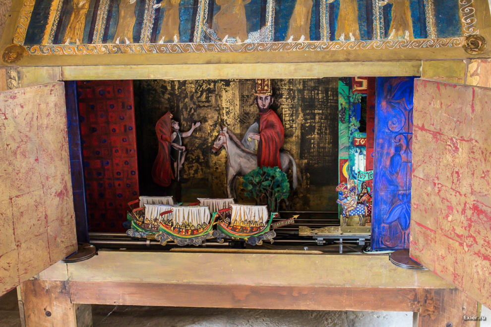 Но сейчас там вместо мощей - театрализованное представление, в процессе которого Мартин торжественно разрезает шинель пополам.