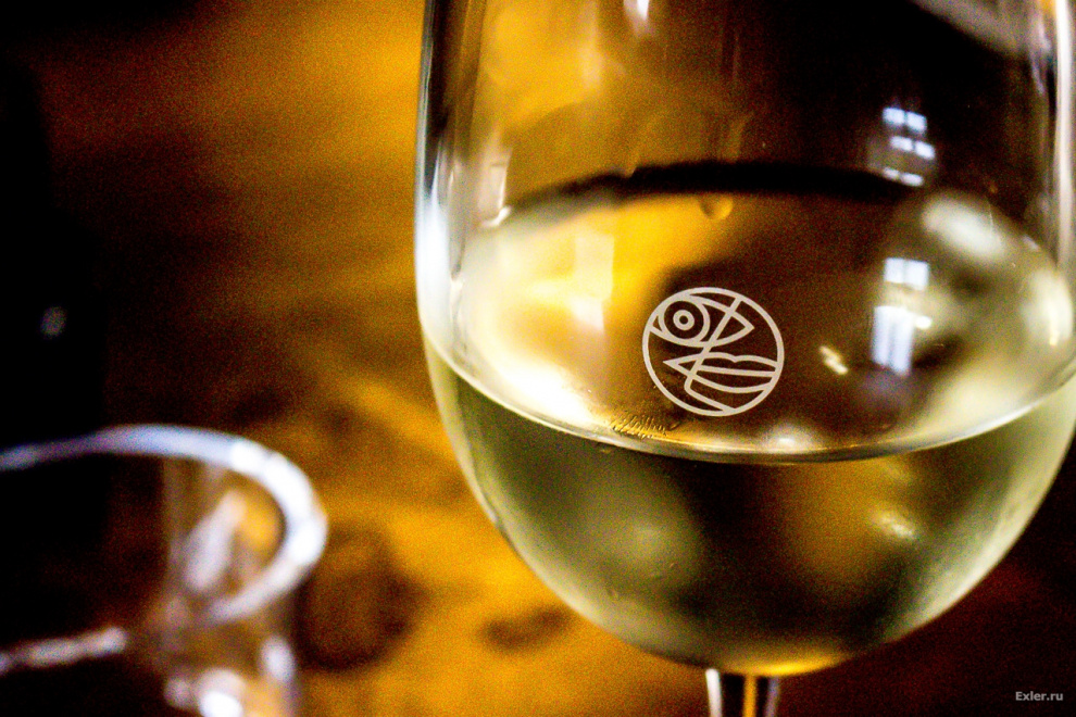 Значок на бокале - фирменный логотип хозяйства, символизирующий три этапа оценки вина: глаз, нос и рот.
