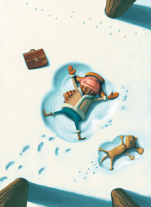 Сразу вспомнилось, что мы в детстве делали так же: портфель в сторону, руки крестом и, с размаху, в белый пушистый толстый снег. ощущение счастья и свободы - уроки кончились и впереди длинный день, горки, санки, и можно делать все, что хочешь. Тогда в Москве можно было детской компанией гулять и хороводиться дотемна, и снег был (или казался?) белым и чистым.