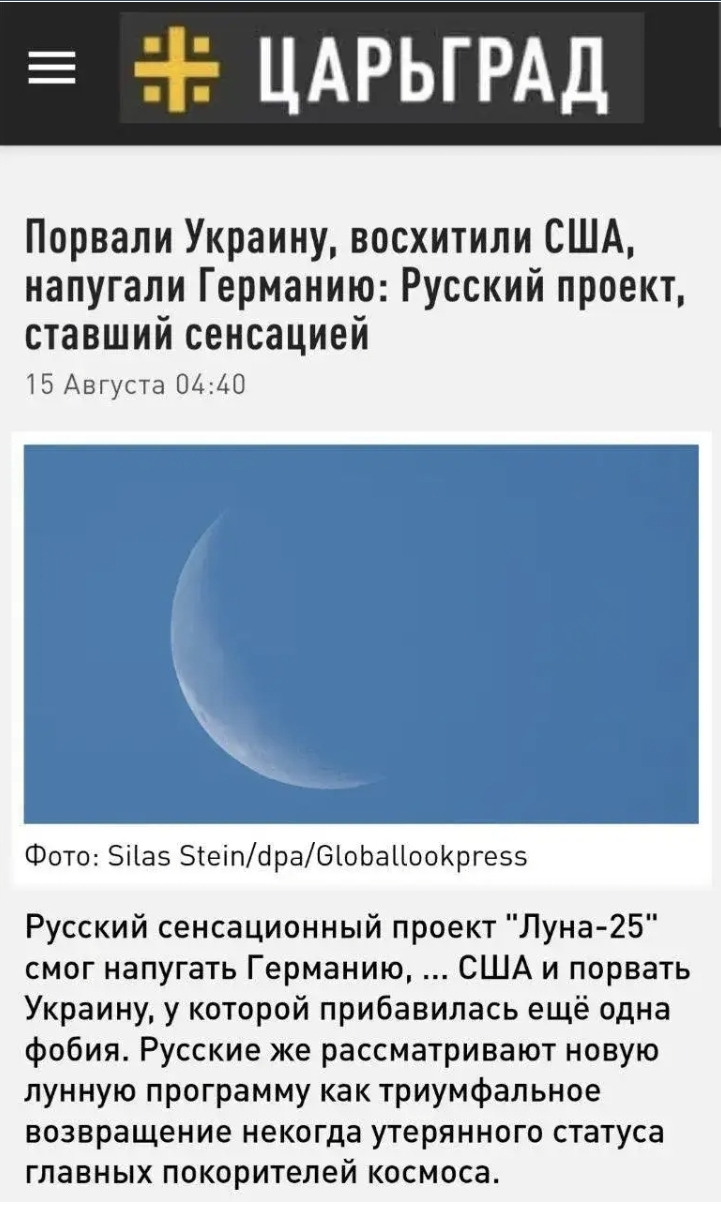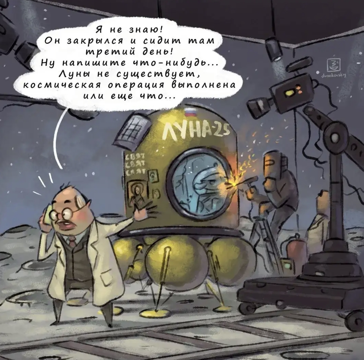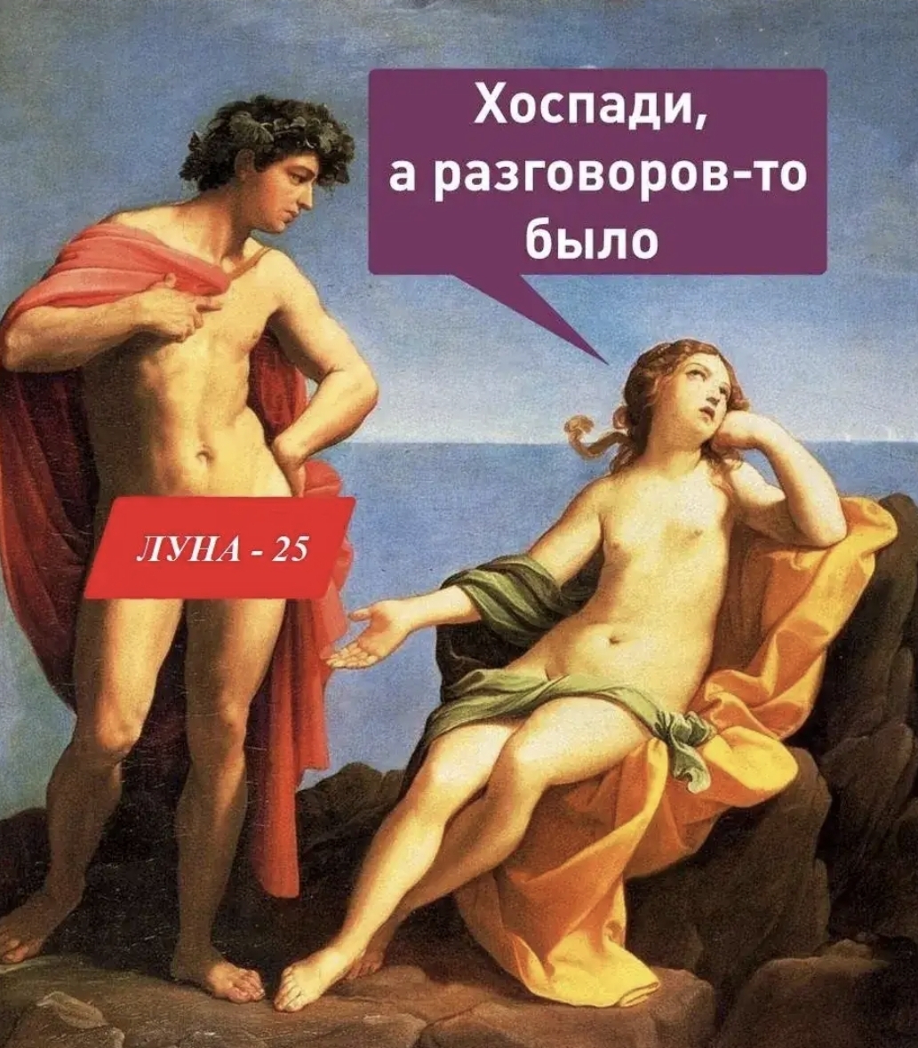 Это вы в смысле про "Луну-25", которая то ли точная копия "Луны-24" 1976 года, то ли вообще недоделанный макет, кторую зашвырнули в сторону Луны, она оттуда передала "снимки" качества как раз 1976 года, после чего во время перехода на предпосадочную орбиту (она типа должна была совершить посадку, а потом проработать на Луне год) там произошла "нештатная ситуация", связь со станцией была потеряна и сейчас, судя по всему, эта штука уже валяется размазанная по поверхности Луны?