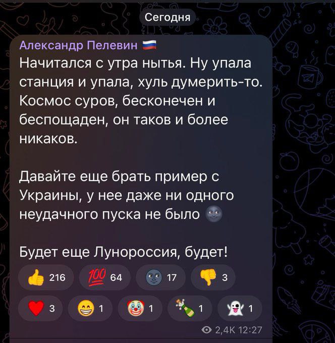 «Роскосмос» уже запросил администрацию президента категорически запретить упоминание о своем позоре всем сми рф.
