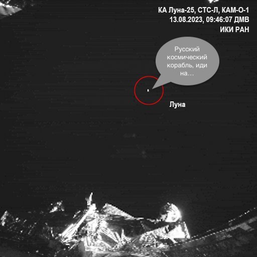 … АМС «Луна-25» стартовала с космодрома Восточный в 2:11 мск 11 августа 2023 года. Приказ товарища начальника был выполнен менее, чем за месяц. 19 августа того же на борту АМС произошел сбой, в результате которого связь со станцией была потеряна, а по некоторым сведениям «Луна-25» перетормозилась и то ли уже распылилась, то ли скоро распылится о поверхность Луны. Удивлявшиеся полувековой давности качеству фотографий остались при своих подозрениях и при полной невозможности что-либо доказать.