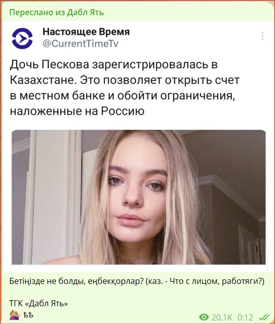Что же вы все о людях сразу плохое думаете? Возможно, она хочет вступить в Талибан, который только что Казахстан исключил из списка плохих парней.