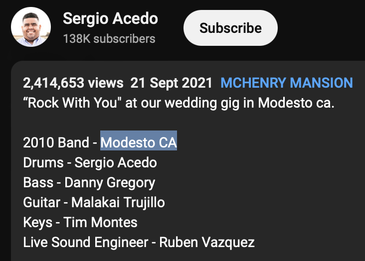 Modesto, CA это не название группы, это город в котором играли (в обоих смыслах) свадьбу.